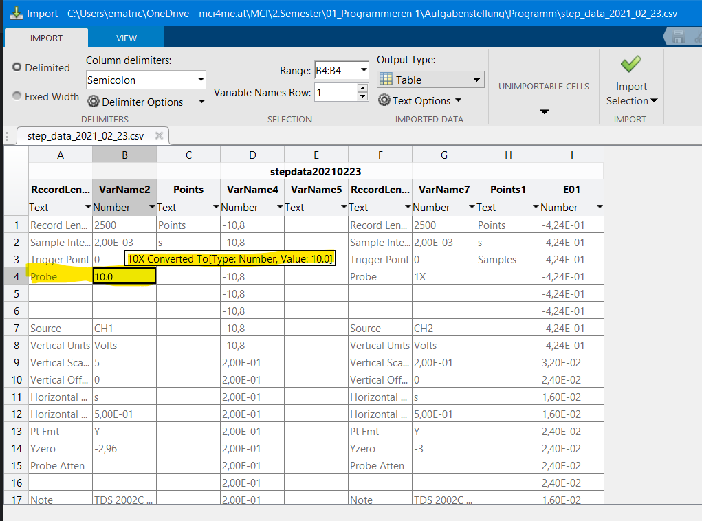 ich versuche Daten aus einer .csv Datei zu importieren. in dieser Datei befinden sich Messwerte, sowie Einstellparameter. Da manche Parameter nicht aus einer reinen Zahl bestehen muss man diese in eine Zahl konvertieren. Der Importmanager erkennt z.b dass ich 10X in 10.0 konvertieren möchte und zweigt dies auch an. doch wenn die Daten schließlich importiert werden, steht in dieser Zelle NaN.