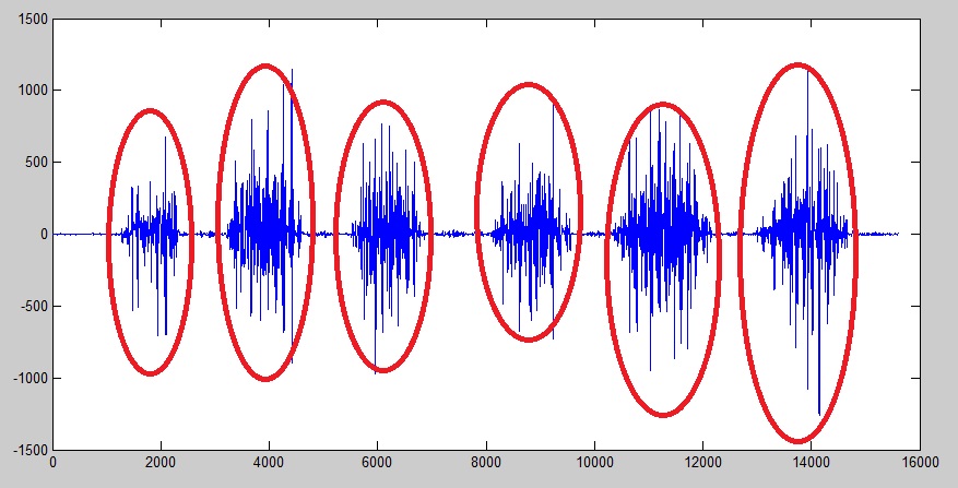 Was ich bräuchte, wäre eine Funktion, die mir die Medianfrequenzen und RMS-Wert in den jeweiligen Intervallen (zwischen On und Offset) ausrechnet und mir in eine Spalte gibt. Danach tastet Matlab das Signal ab, findet den nächsten "Burst" und berechnet die Medianfrequenz im nächsten On-Offset-Intervall und schreibt das Ergebnis in die zuvorangelegte Spalte, unter die vorherige Medianfrequenz, usw... bis das Signal eben aus ist (etwa 20 MInuten) Als Ergebnis hätte ich dann gerne einen SPaltenvektore mit den jeweiligen Medianfrequenzen aller Muskelkontraktionen. (ich hoff ich habe es jetzt einigermaßen gut erklären können...)