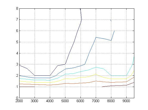 Ich habe hier ein paar Messdaten zu des spezifischen Verbrauchs eines Verbrennungsmotors vorliegen und möchte gerne einen Plot erstellen, der in etwa so ausschaut: