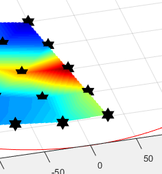 Ich habe ein surfaceplot mit der Funktion surf erstellt und im nachhinein die Messpunkte mit scatter in das Diagramm eingetragen. Mich interessiert nur eine 2D-Darstellung des Problems. Die Messpunkte sind auch ersichtlich(in 3D Darstellung), aber in 2D Darstellung werden die Puntke von der Oberfläche überdeckt.