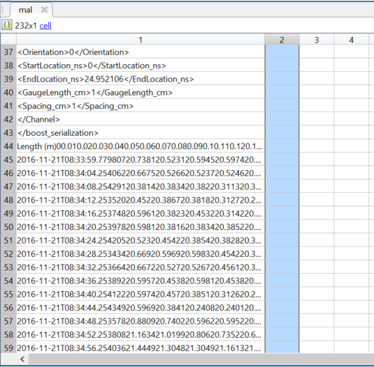 Ich importiere diese. Die ersten 45 Zeilen sind nur headers. Es gibt nur eine Spalte.