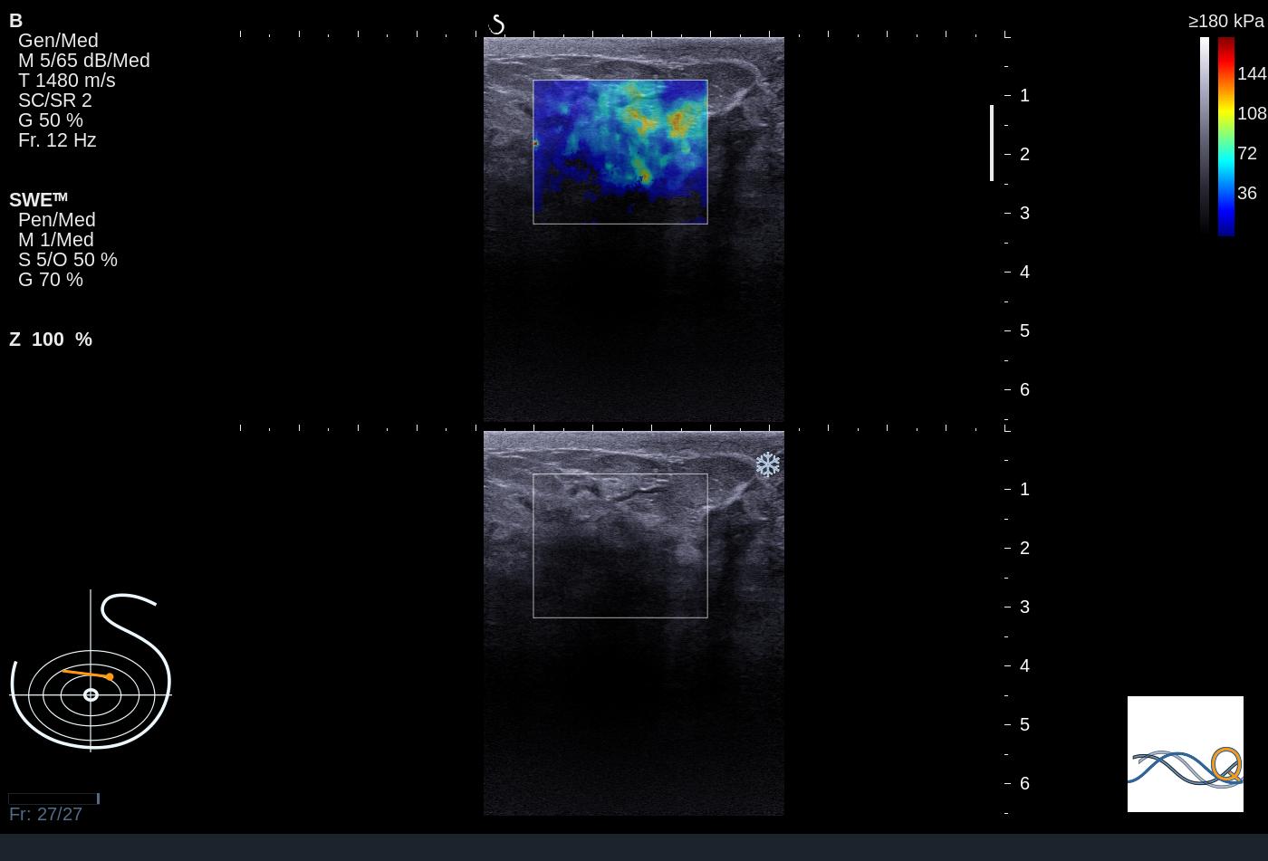 Also der 'Start vom Rahmen' ist die obere Kante des Rechtecks in der Ultraschallaufnahme.