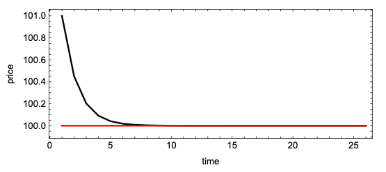 Das hier ist einfach eine Funktion, die besagt, dass sich der heutige Preis (P[t]) folgendermaßen zusammensetzt, und zwar aus den vergangenen Preisen (P[t_1]) plus einer Variable a mal vergangene Erwartungen der Anleger (ED[t-1])