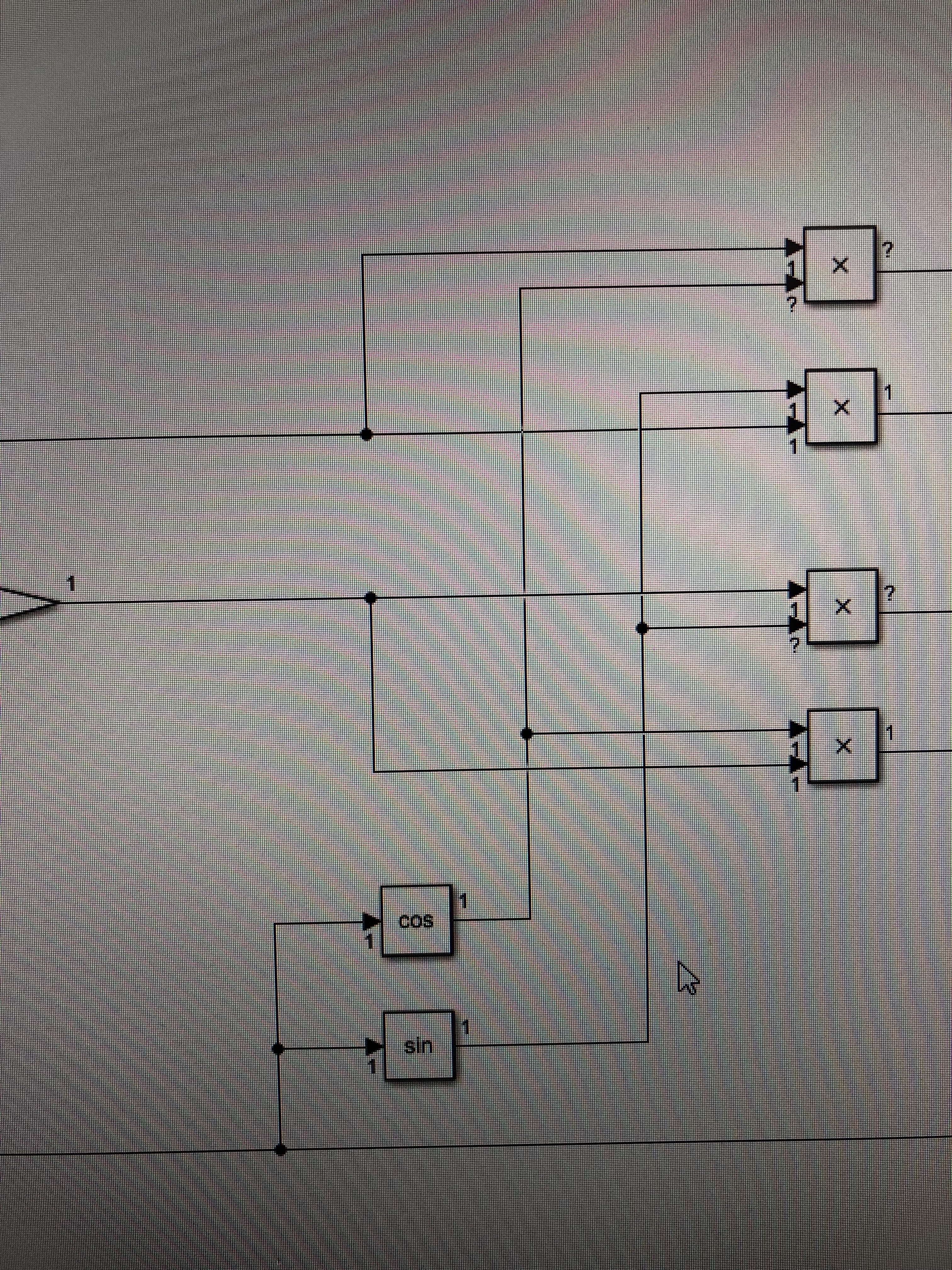 die Frage ist eher generell, daher auch das "aus dem Kontext gerissene" Foto. In meinem Beispiel werden zwei Signale mit der Dimension 1 jeweils mit einem anderen Signal und einem sin oder cos mulitpliziert. Die Dimensionen aller Eingänge (auch nach sin und cos) sind bekannt, da hier noch überall eine 1 dabei steht. Nun erkennt Simulink beim mulitplizieren auf ein mal die Dimensionen zweier Eingänge nichtmehr.