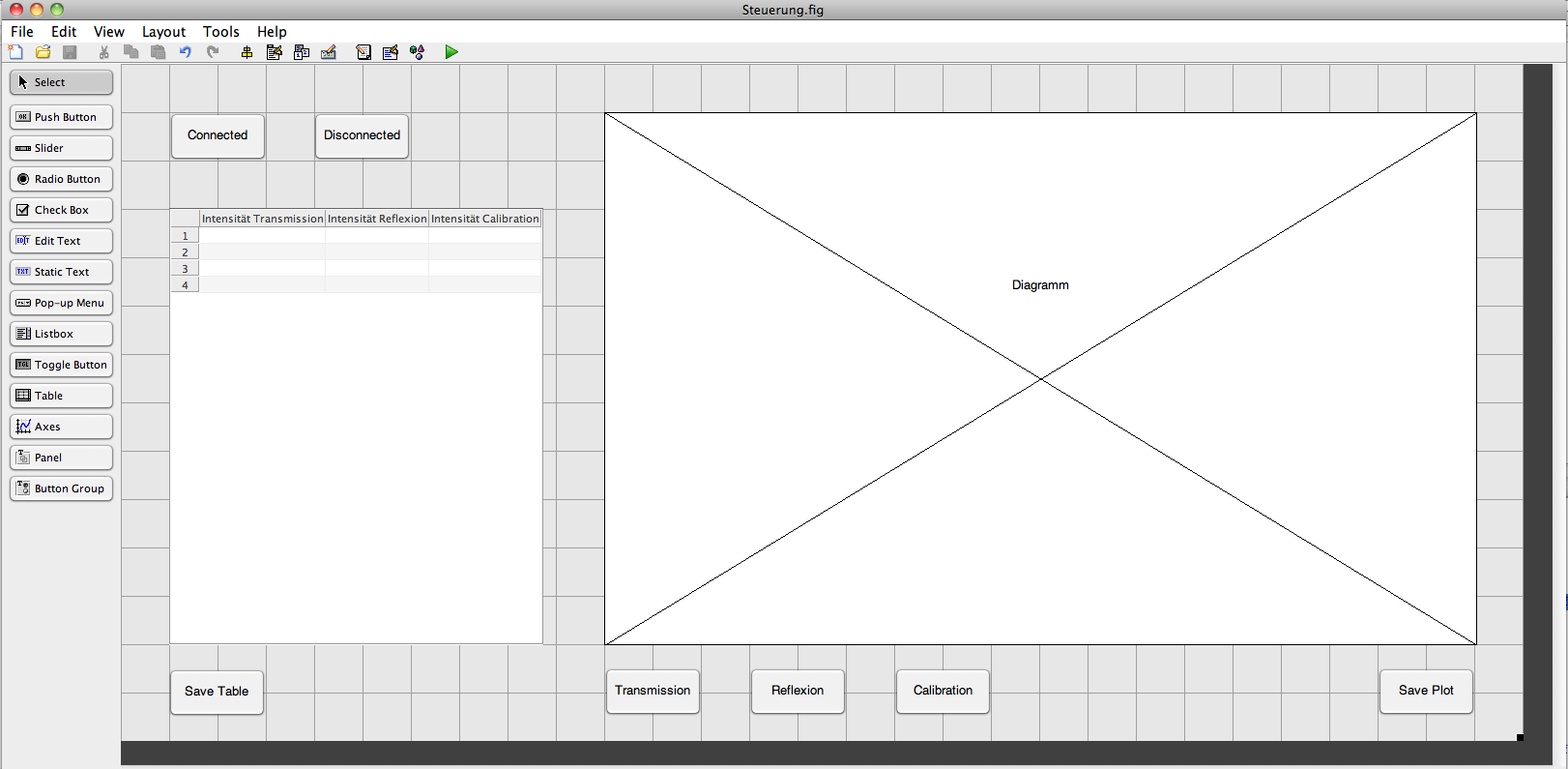 Ich habe ein Messgerät aus dem ich Daten empfange, welche ich in einer Variablen speichere und plotte. Dafür hab ich mir mit den von Matlab zur Verfügung gestellten Komponenten eine GUI gebastelt. In dieser GUI ist ebenfalls eine Tabelle enthalten. Diese Tabelle soll mich den Messdaten gefüllt werden, die ich in der bereits erwähnten Variabel gespeichert habe.
