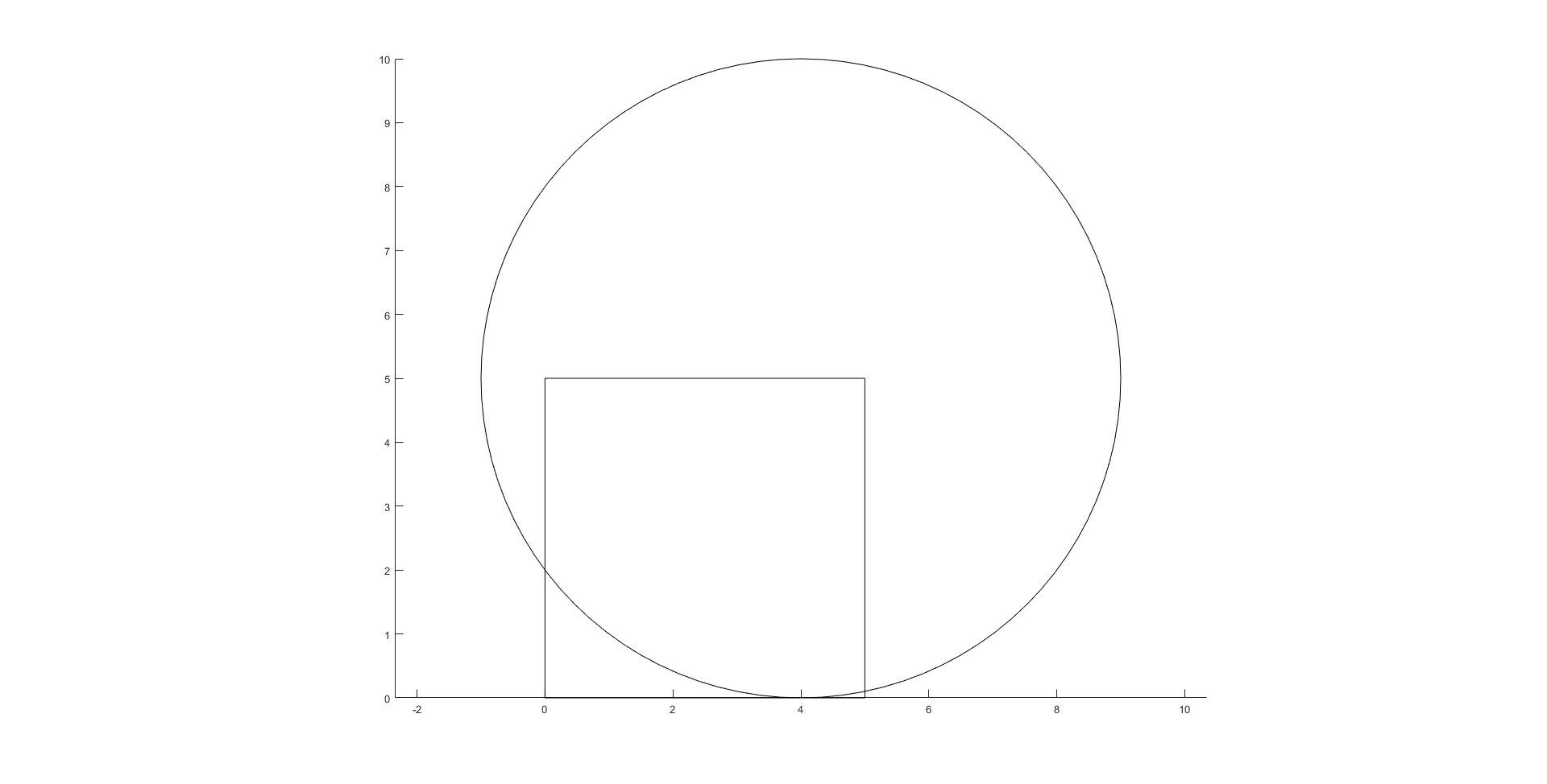 Gegeben sei ein Kreis mit dem Radius r=5 und ein Viereck mit einer Kantenlänge von 5 (siehe Bild). Der Mittelpunkt des Kreises liegt auf den Koordinaten [4;5].