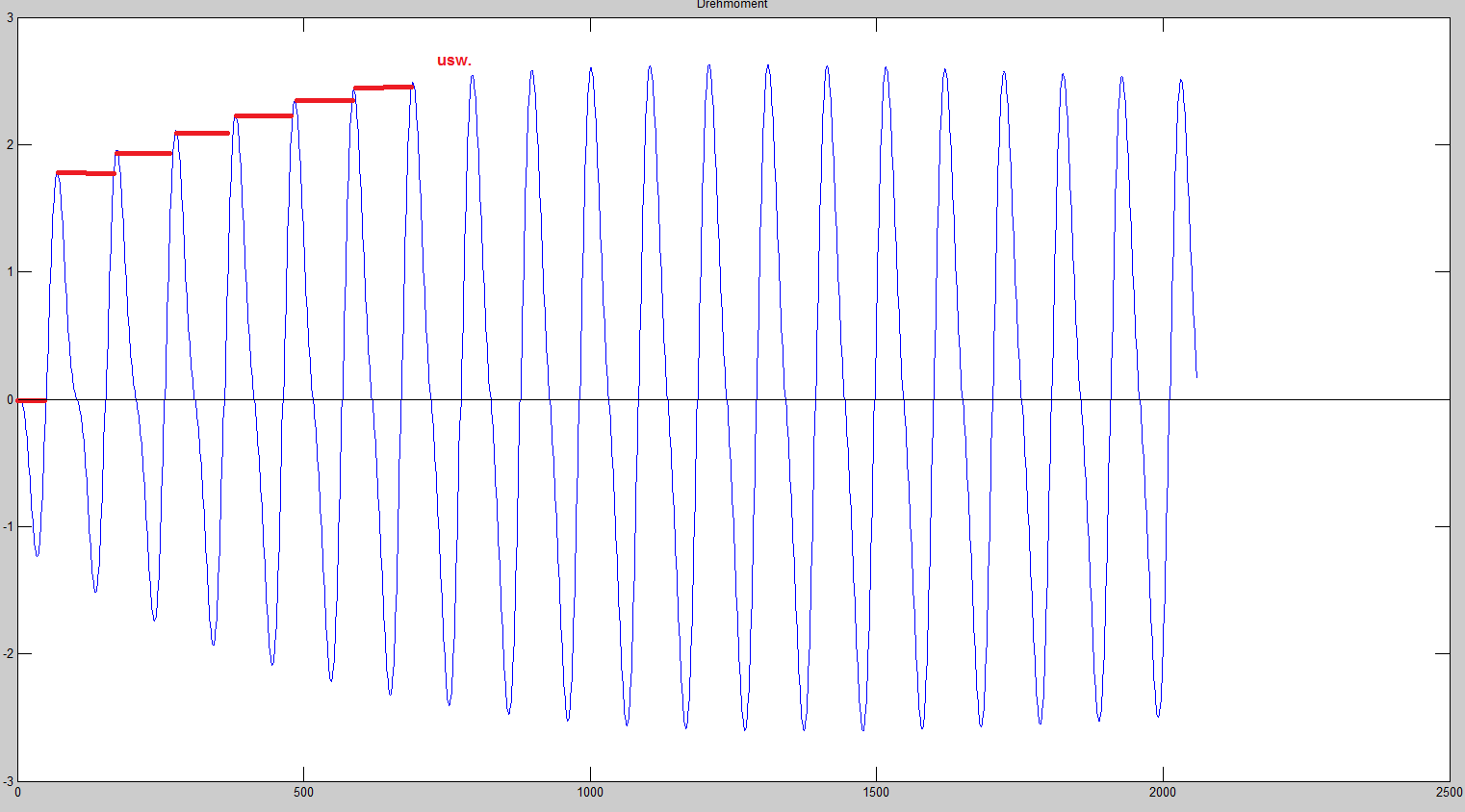 Kurzum, ich möchte die lokalen Maxima des Drehmoments bestimmen, und dann nach Möglichkeit interpolieren. Mir würde aber auch schon reichen, das letzte lokale Maximum zu kennen und dann diesen Wert als konstanten Wert für das Drehmoment zu nehmen, bis das nächste lokale Maximum kommt (siehe Grafik).