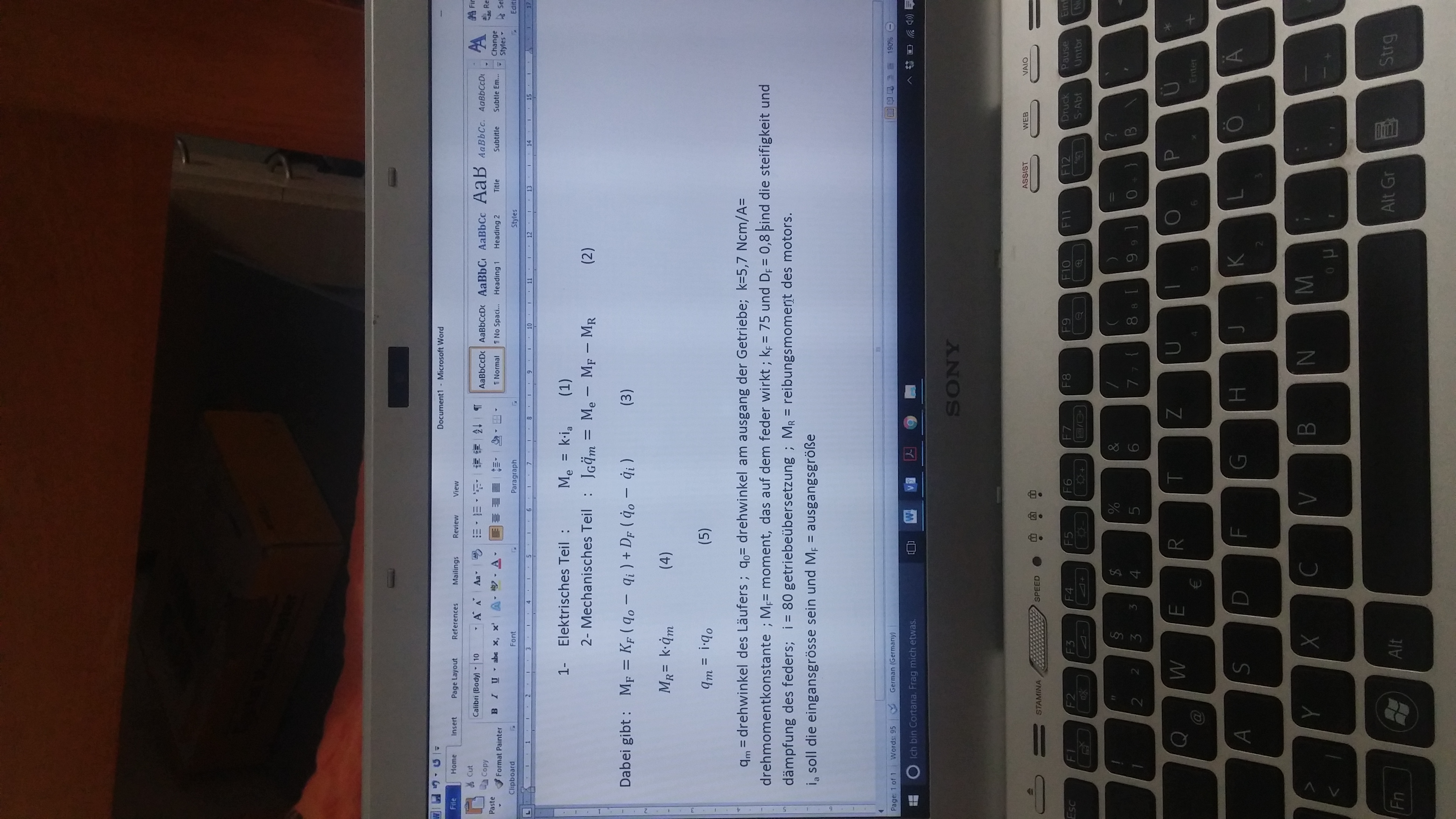 ich musste selber die bewegungsgleichung herleiten und bin da auch nicht sehr sicher. anbei habe ich ein fotos zu den Gleichungen gehängt.