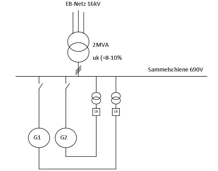 Ich habe jetzt probiert ein Testnetz (1-phasig) mit den Rk und Xk (Kurzschlussimpedanz) eines Trafos zu erstellen.