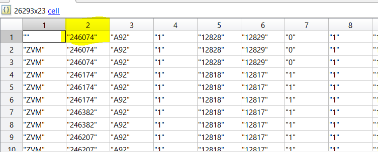 ich habe eine .csv Datei eingelesen in matlab als Cells.