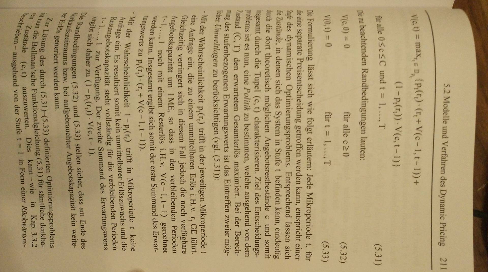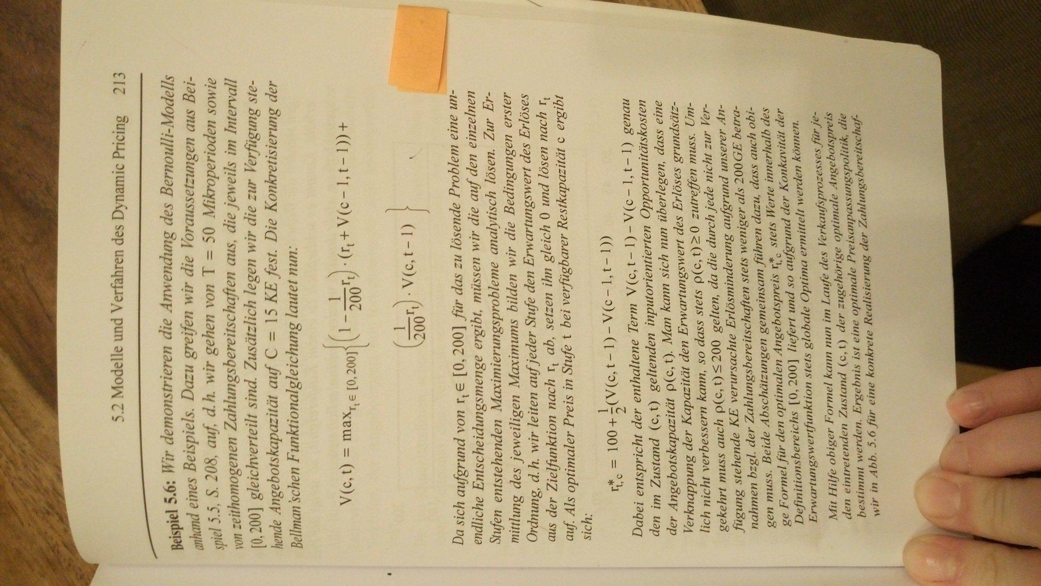 V = 0 else V = (1-1/b*p(k))*(p(k)+V(c-1,t+1))+(1/b*p(k))*V(c,t+1)% Bellman'sche Funktionalgleichung zur Berechnung des Erlöses(auf jede Kapa und jeden Preis bezogen, rekursiv) end% Berücksichtung der Wskt. des Kaufes und des Nicht-Kaufes eines Kunden ifsize(merken,1) < k % speichert nächsten Preis mit zugehörigem Erlös