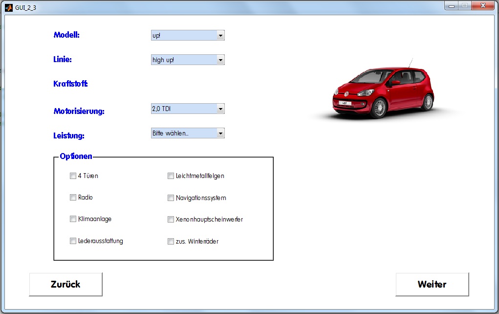 Der Benutzer soll nacheinander sein Fahrzeug mit Hilfe der verschiedenen