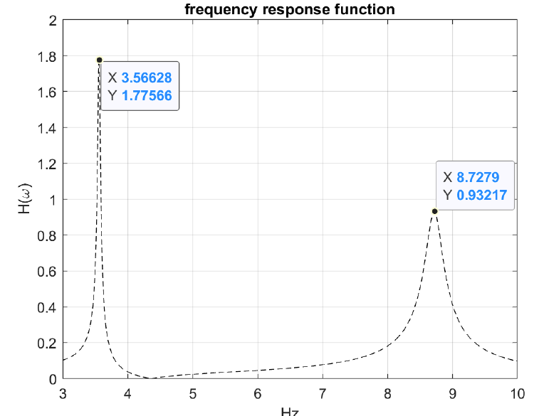 Ich sollte die Eigenfrequenzen von meinem 2DoF Schwingers graphisch ausgeben und komme da nicht weiter. Hab in meinem script bereits die beiden Frequenzwerte bestimmt und auch mit dem Zustandsraummodell die Bode Diagramme geplottet und überprüft. Stimmt alles überein. Jedoch meldet mir das System immer einen Fehler bzgl. unterschiedlicher Vektorengröße...