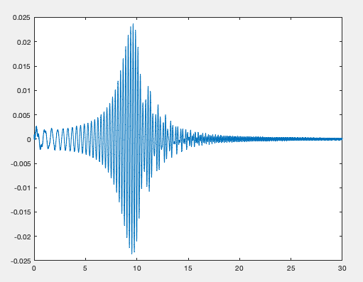 Habe dazu in Simulink einen chirp block angelegt und da sieht man auch schön die Resonanz im Bereich der Eigenfrequenz.