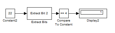 Zum Abfragen ob das 3.Bit, also das mit Index 2 gleich '1' ist, würde ich den Block 'Extract Bits' nehmen, dass Bits auswahlen und mit dem angestammten Wert (hier 4) vergleichen (mit 'Compare to Constant') ist zwar ein bisschen umständlich, aber funktioniert. Raus kommt dann ein bool'scher Wert für das Bit.