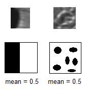 Danke vorerst fuer die Antwort, das hab ich schon alles gemacht, jedoch bringt mir das nichts. Wenn ich z.B. zwei verschiedene Binaerbilder hab, mit 50% Nuller und 50% Einser ist der Mittelwert immer 0.5, egal wie die pixel angeordnet sind. Und das gleiche fuer die Standardabweichung. D.h. ich erkenne nicht ob alle Objektpixel als ein grosses objekt zusammen liegen oder ob alle Objektpixel irgendwie verstreut sind.