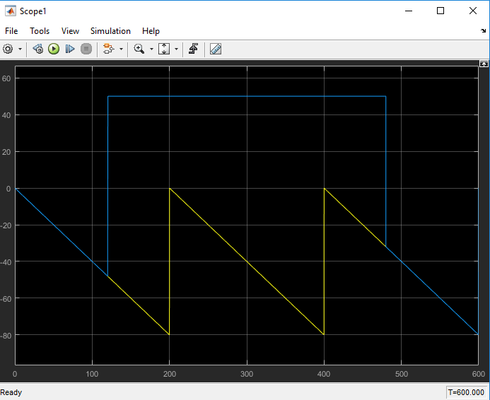 Dazu sei gesagt, dass meine wirklichen Signale komplexer sind und das hier nur vereinfachte Signal sind. Zudem kenne ich nicht a priori die Zeitpunkte (hier 120s und 480s Simulationszeit) an denen umgeschaltet wird. Das Modell müsste dahingehend selbst erkennen wann welches Signal anliegt (logisch 0 oder 1).
