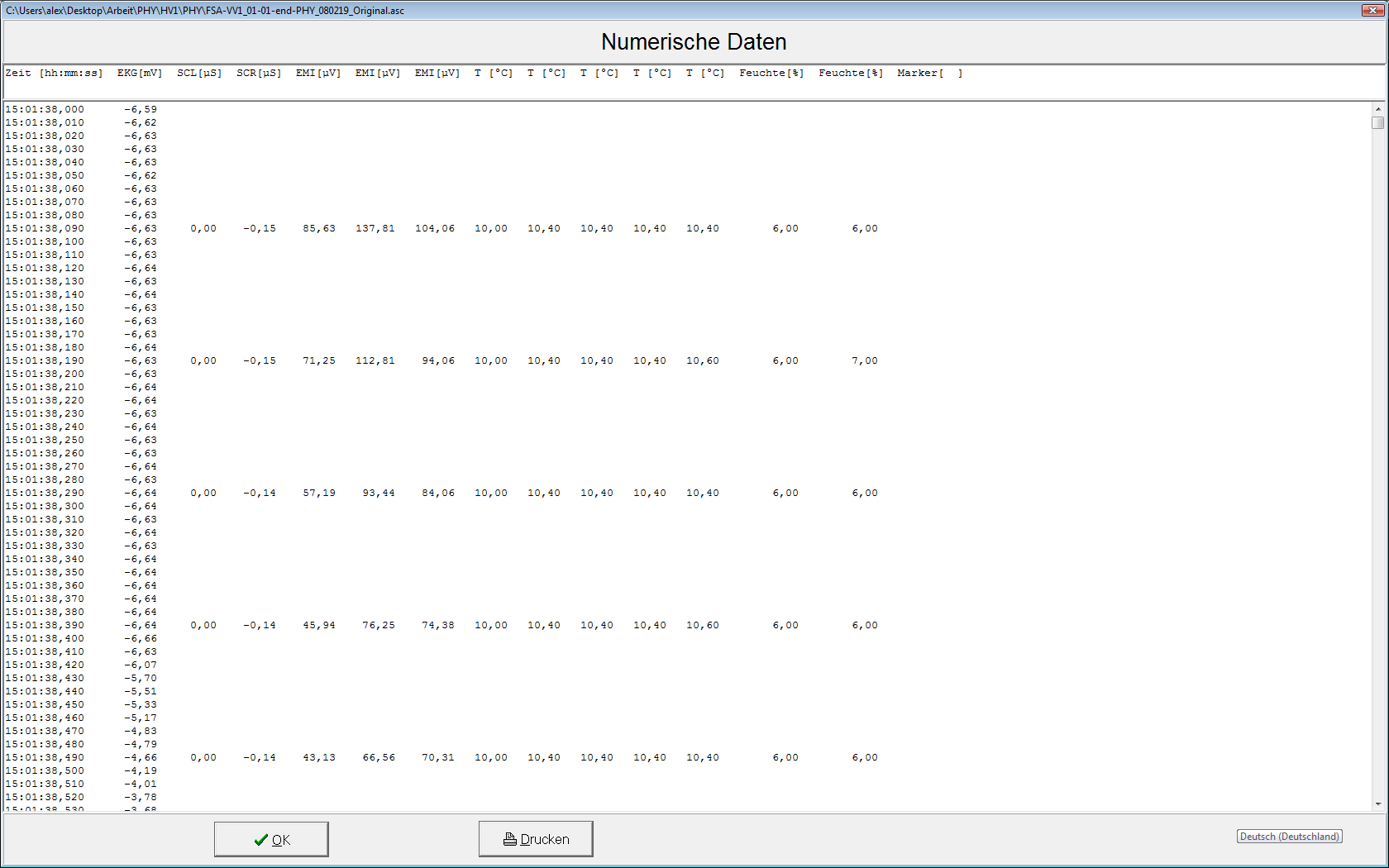 Trouble reading number from file (row 1, field 1) ==> Zeit EKG[mV] SCL[µS] SCR[µS] EMI[µV] EMI
