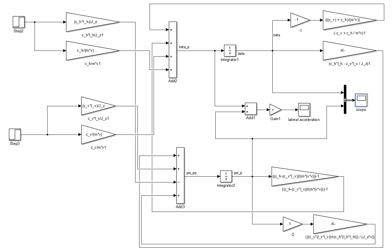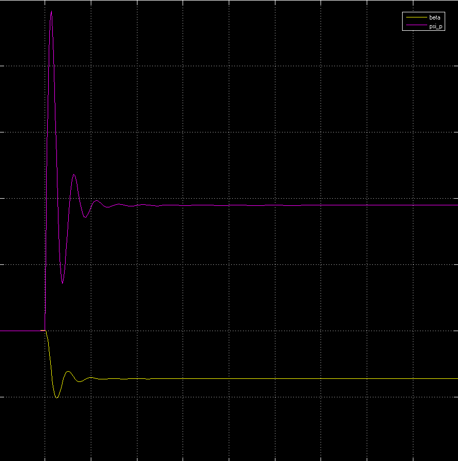 ich habe ein Einspurmodell in Simulink modelliert. Ich weiß jedoch nicht ob mein Verlauf von Schwimmwinkel und Gierrate so richtig ist. Ich bin der Meinung, dass das System nicht Schwingen darf.