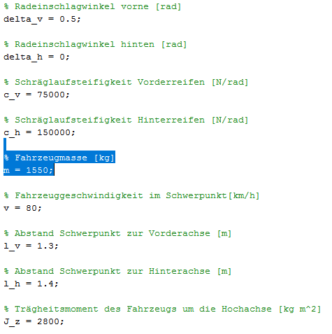 das Schwingen bei einer sprungförmigen Anregungn kann durchaus sein. Leider hast du die y-Achse in deinem Verlauf entfernt, sonst könnnte man ungefähr sagen, ob die Werte für Gierrate und Schwimmwinkel i.O. sind. Versuch den Sprung des Lenkwinkels ein PT1-Glied zu glätten und schau dir dann nochmal die Ergebnisse an.