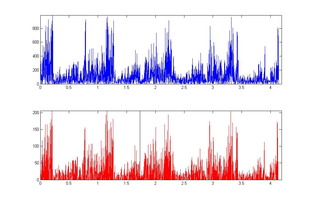 habe eine EMG Messung durchgeführt und muss von diesem EMG ein RMS von einem Fenster von 10 ms berechnen. Ich habe das folgende Programm geschrieben, aber das ergebnis sieht so ähnlich aus wie das ohne die RMS Glättung (siehe Bild) . Aber die Y-Achse hat sich verkleinert.