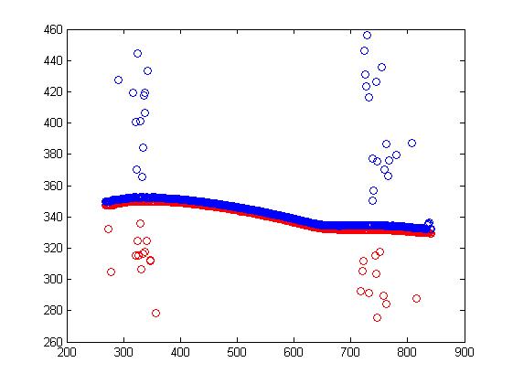 ich befasse mich zur Zeit mit einer Konturanalyse. Diese erfolgt durch ein seperates Programm. Ich lese die erhaltenen Daten in Matlab ein und erhalte wie auf dem Bild zu erkennen die Kotur mit deutlichen Ausreißern.