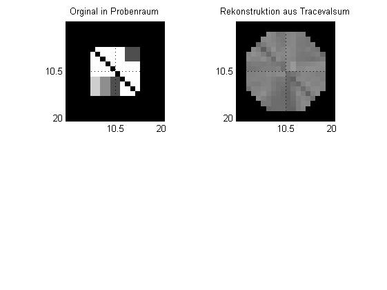 Wenn ich mein Bild hin und wieder zurücktransformiere, sollte fast das Orginal dabei rauskommen. Ich arbeite mit mehreren Strahlen und benutze eine Gewichtung, die genauso wie erstellt wird wie die Transformation und im Endeffekt eine Aufsummierung der Punkte durch die ein Strahl lief darstellt. Doe Qualität ist aber sehr dürftig. Die Bilder sind sogar besser, wenn nur wenige Strahlen(siehe Anhang) benutzt werden(Abstand Pixel).