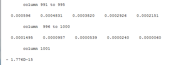 Ich nehme an du durchläufst die Funktion mit jedem der k-Werte, also von 1 - 1001. Dann liegt das Problem bei "yd2(k-1)" für k = 1. durch diese Zeile greifst du für k = 1 auf das 0. Element zu. Deswegen ungültig.
