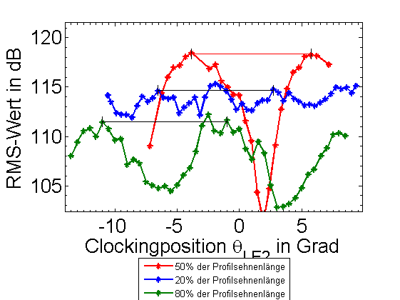 'YMinorTick',MYT,'FontName',FN,'FontWeight',FW,'Fontsize',FS) xlabel(['Clockingposition \theta_{LE',num2str(LE),'} in Grad'],'FontName',FN,'FontWeight',FW,'Fontsize',FS) ylabel('RMS-Wert in dB','FontName',FN,'FontWeight',FW,'Fontsize',FS) legend({'50% der Profilsehnenlänge','20% der Profilsehnenlänge','80% der Profilsehnenlänge'},'Location','SouthOutside','FontSize',LG,'FontWeight',FW) xlim([x_min-0.5 x_max+0.5]) ylim([y_min-0.5 y_max+0.5])