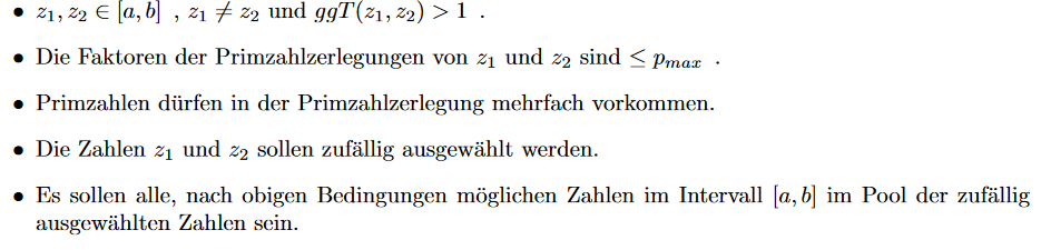 Ich müsste einen Zahlenpool erstellen, aus dem ich dann zwei Zahlen ziehe, die Bedinungen erfüllen müssen.