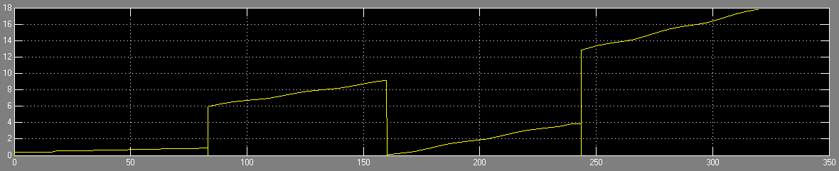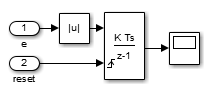 Wie sich vermutenlässt, ich integrError(e,reset) die Simulinkfunction, e das Fehlersignal und bei jedem Eintritt in den state wird der reset des Integrators angetriggert.