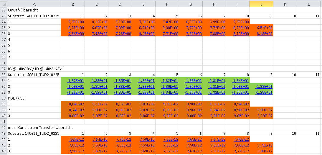 Wir haben einen Reihenmessplatz bei welchen Transistoren automatisch gemessen werden und die ermittelten Werte in eine csv-Datei speichert. Jetzt existiert ein Excel-Auswerteprogramm, welches eben diese Werte auswertet, als Übersicht darstellt und über Hyperlinks zu einer Extradatei mit den jeweiligen Kennlinien verlinkt.