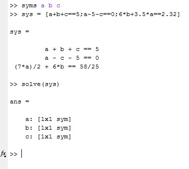 Dieses kann ich mit Mlputmatrix() an Matlab übergeben, aber wie gesagt nur als String. In Matlab stehen die Gleichungen dann in der Matrix var und die Variablen in sys.