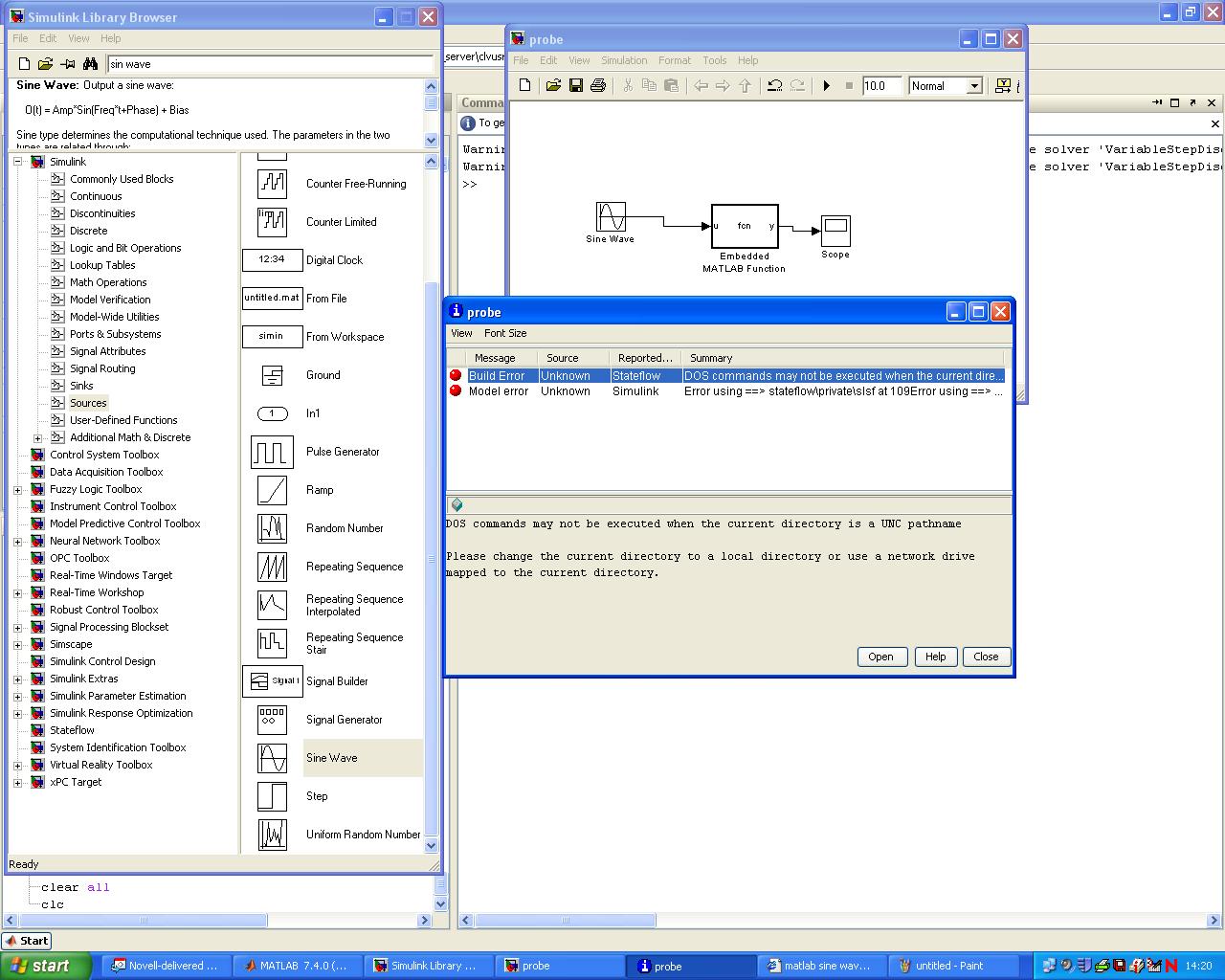 Ich hab versucht folgendes Modell(siehe Anhang) zu simulieren,da kommt allerdings immer nen komischen Fehler dabei.