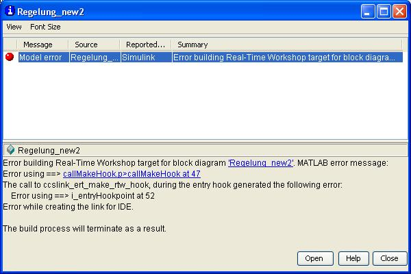 Fehler Real-Time Workshop |