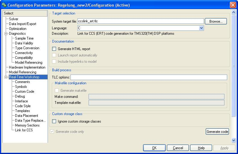 CCS. Die EInstellungen, die ich im Simulink Modell gemacht habe, habe