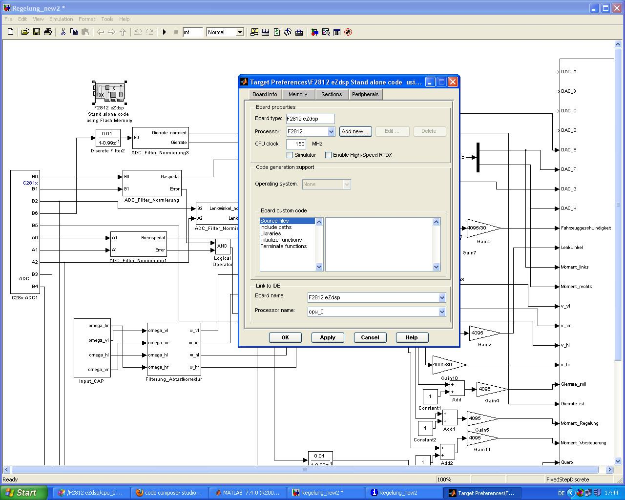 Matlab 2007a über Real-Time Workshop und Code Composer Studio 3.3