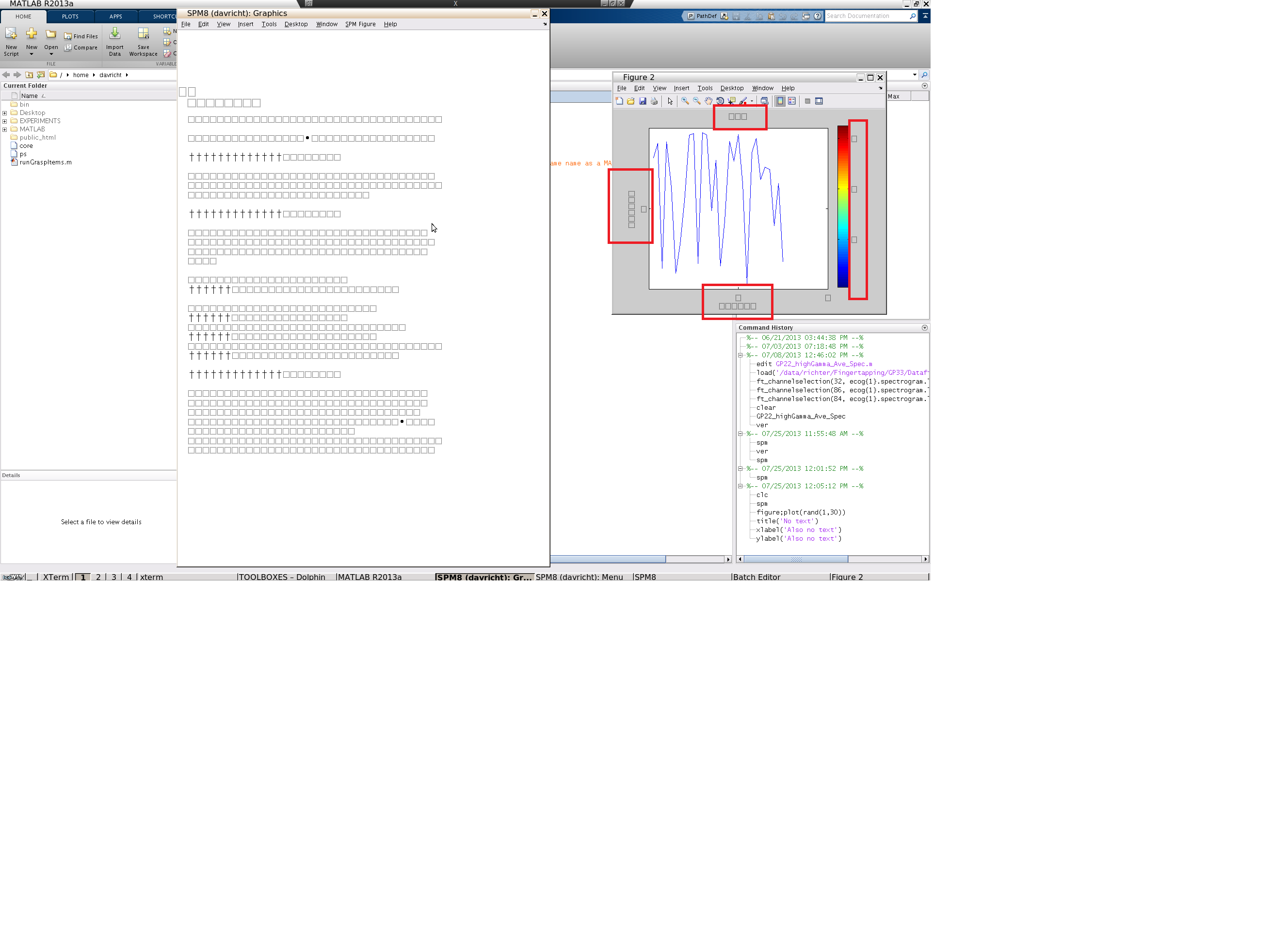 wir haben vor kurzem unseren Server neu aufgesetzt und im Zuge dessen eine neue Matlab version installiert. Seit dem wird Text in Grafiken (z.B. Achsenbeschriftungen, Titel, oder einfach nur der Text innerhalb der Grafik) nicht mehr dargestellt (sie angehängte Datei). Leider kann ich mir überhaupt nicht erklären, woher dieses Problem kommt, bzw. meine bisherige Internetrecherche hat leider zu nichts geführt. Es wäre super wenn mir jemand helfen könnte.