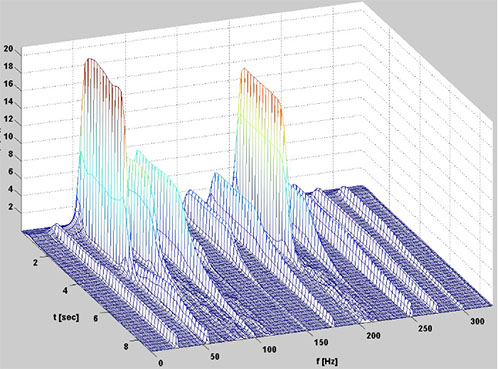 Da trägt man zum Beispiel die Zeit auf der X-Achse auf und die gefundenen Frequenzen der Zeitbereiche auf der Y-Achse. In Farbskalierung trägt man dann die Häufigkeit der Frequenzen auf. Man erhält dann soetwas wie die zeitliche Entwicklung des aktiven Frequenzbereiches.