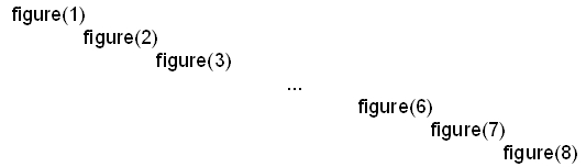 ich möchte 8 figures diagonal auf dem Bildschirm anordnen, d.h. figure(1) oben links in der Ecke und figure (8) unten rechts in der Ecke. Die Figures können sich an ihren Ecken ruhig überlagern und ihre Größe ist auch nicht so wichtig. Es sollte also etwa so aussehen (s. Anhang):