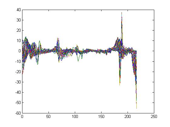 Meine Frage ist folgende, ich möchte nun gerne das Diagramm filtern, dass heisste ich möchte nur noch die Graphen plotten, die eine große Steigung haben, zu sehen bei x=185.