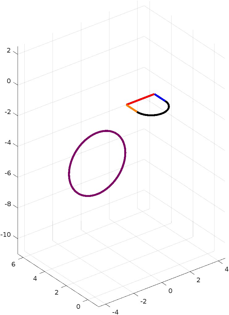 plot3([x(1:3*n:end); x2(1:n:end)], [y(1:3*n:end); y2(1:n:end)], [z(1:3*n:end); z2(1:n:end)], "k") hold off