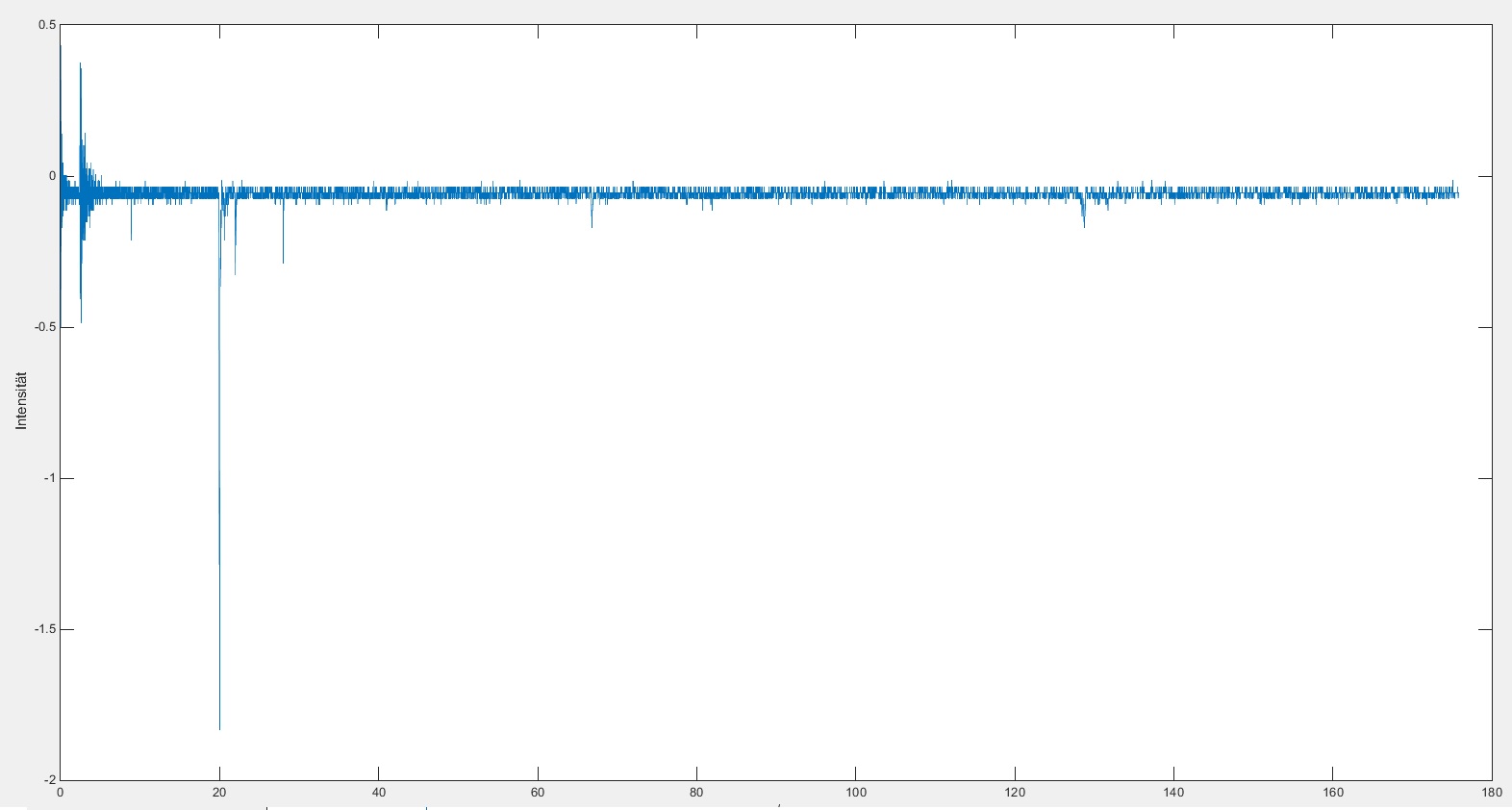% ... und stellen fest, dass das ganz schön rauscht! % Da wir keine Ahnung von Filtern haben, "bügeln" wir das einfach glatt, % indem wir alles Werte, die offenbar kein Signal darstellen einfach zu % Null setzen, und zwar so: