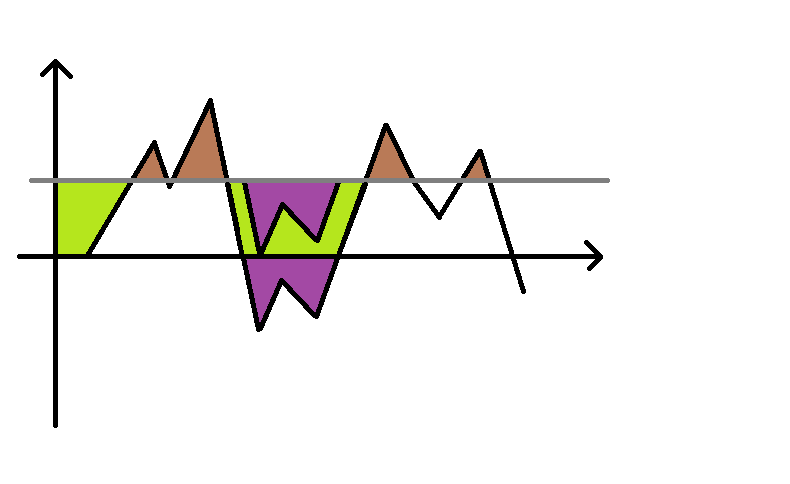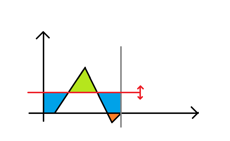 - Die negative Fläche unterhalb der x-Achse(lila) wurde nach oben kopiert und soll vom grünen Bereich abgezogen werden