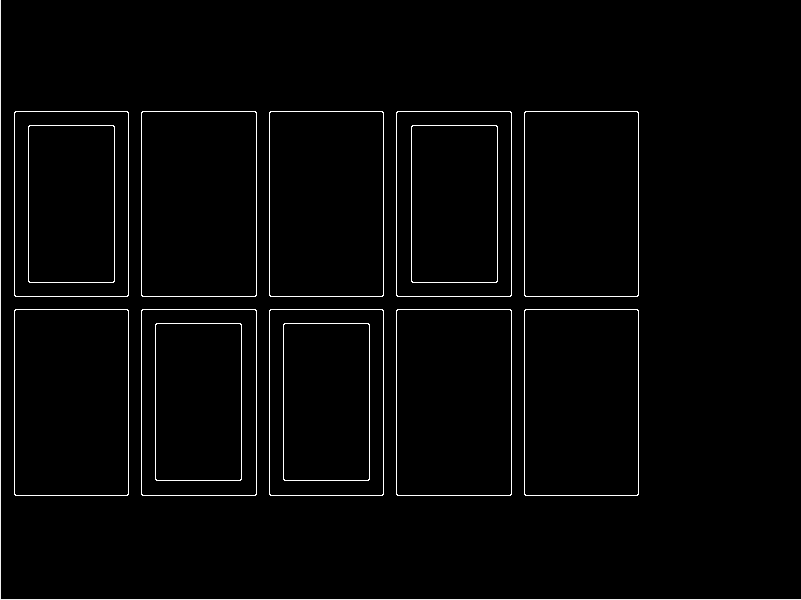 ich hab das obige Bild in ein Kantenbild gewandelt. Zusätzlich habe ich dieses Kantenbild in Bereiche unterteilt, so dass jeder Stellplatz (siehe Bild) ein Teilbild des gesamten Kantenbilds ist. Nun möchte ich diese 10 Teilbilder in einer Matrix/Array speichern und diese mit Hilfe einer Schleife wieder auslesen und für die weiteren Operatoren verwenden.