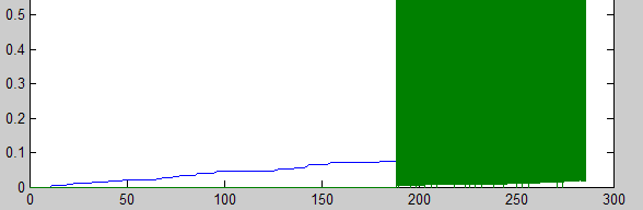 vermutlich verändern sich die y-Werte der grünen Kurve so schnell, dass eine Darstellung keine sinnvolle Auflösung mehr bietet. Was tun? Das hängt davon ab. Ist dieser Abschnitt periodisch, hilft ein Zoom in einen repäsentativen Bereich.