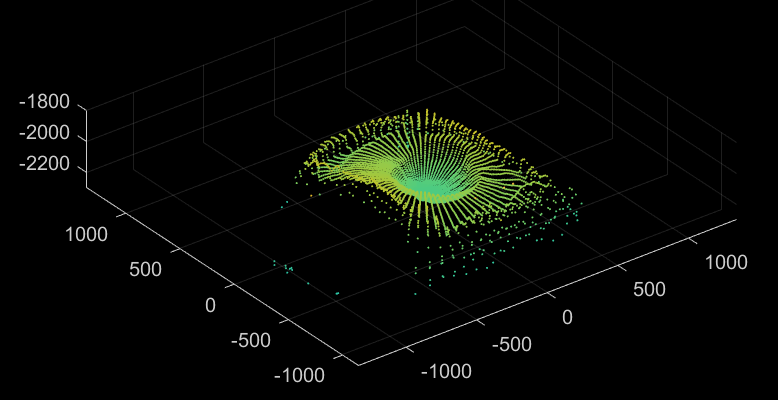 Ich habe aus 2D-LiDAR-Daten eine 3D-Punktwolke erzeugt. Die Daten werden grundsätzlich stets um 5° gedreht, bis die ganze Umdrehung abgedeckt ist (siehe Abb.)
