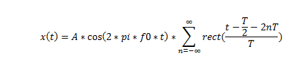 Ich weiß auch genau wie sie aussehen soll, jedoch weiß ich nicht wie ich die Rechtecke definieren soll. Im Prinzip ist die Funktion ja auch periodisch mit der PeriodenDauer 2T. Während des ersten T sollte das Rechteck 1 sein und während T<t<2T 0. So kenne ich zumindestens die Definition.