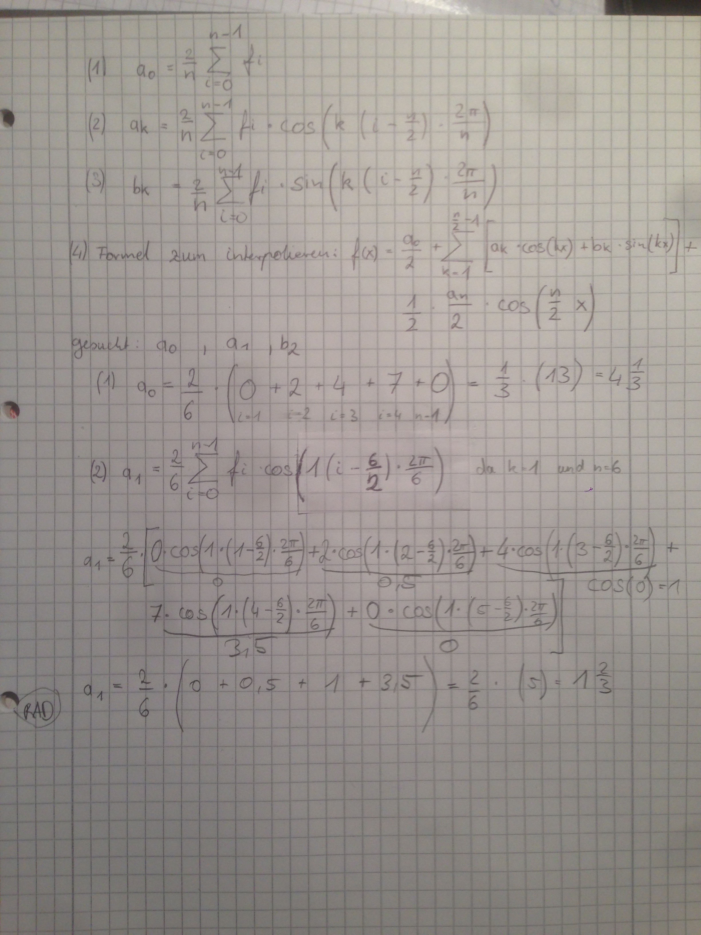 ich möchte die Fourierkoeffizienten a0, a1, b2 für eine Messreihe
