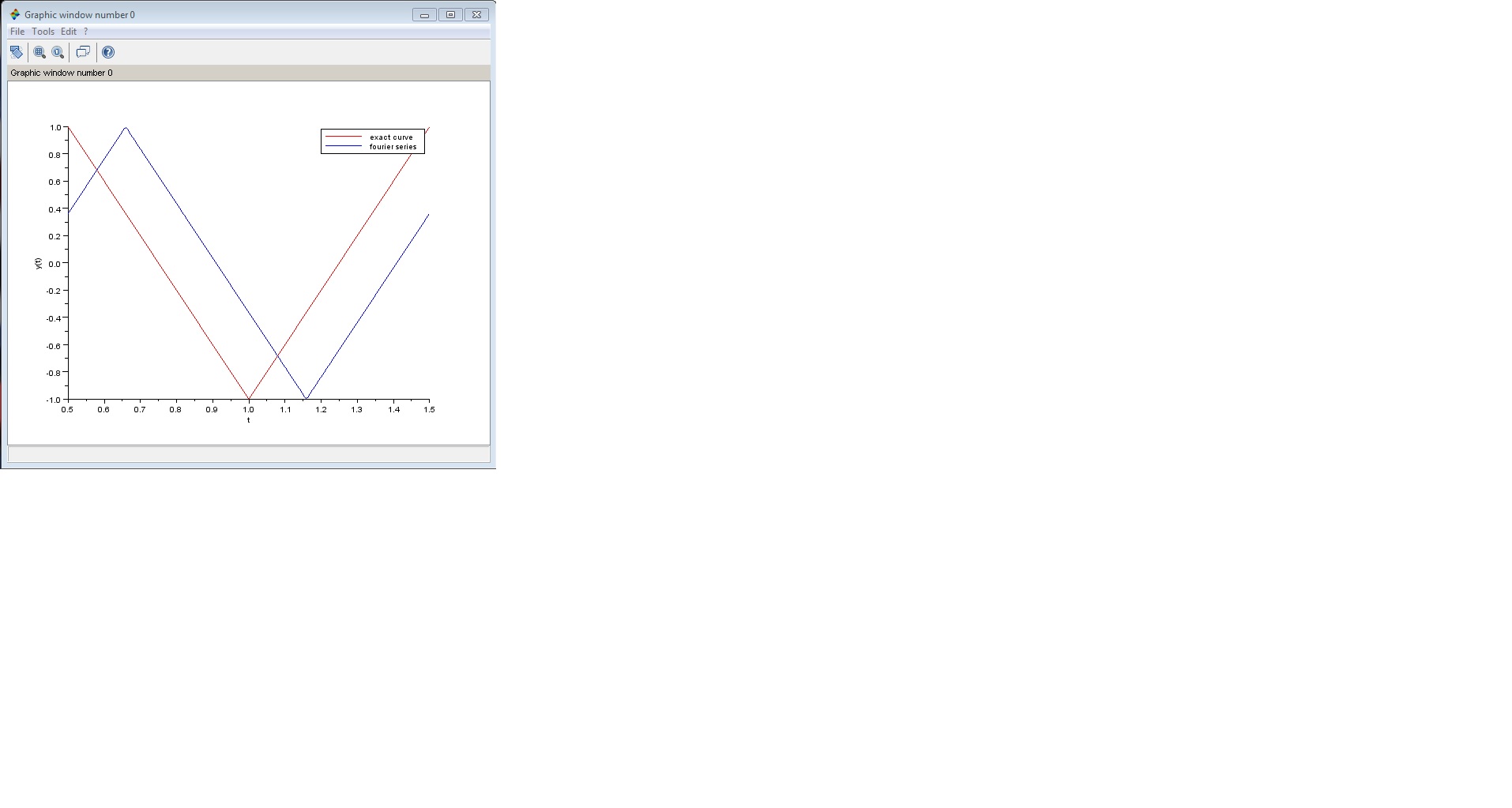 Ich habe die dazugehörige Fourierreihe bestimmt und versucht diese in Scilab zu testen.